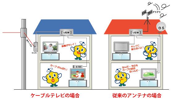 今まで電波障害や、気象条件によって悩まされていたテレビの映りの悪さも解消されます。