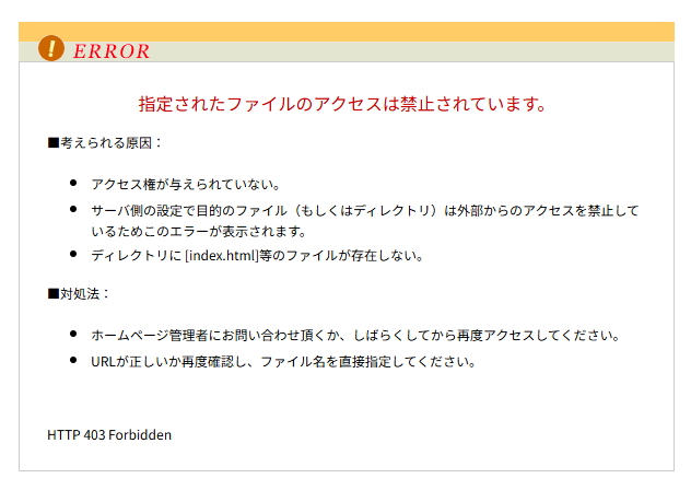 転送先で使用できるファイル名とフォルダ名の文字と記号は、半角英数文字、半角記号_(アンダーバー)のみです。これ以外の文字や記号がファイル名またはフォルダ名に使用されている場合も、次のエラーページが表示されます。